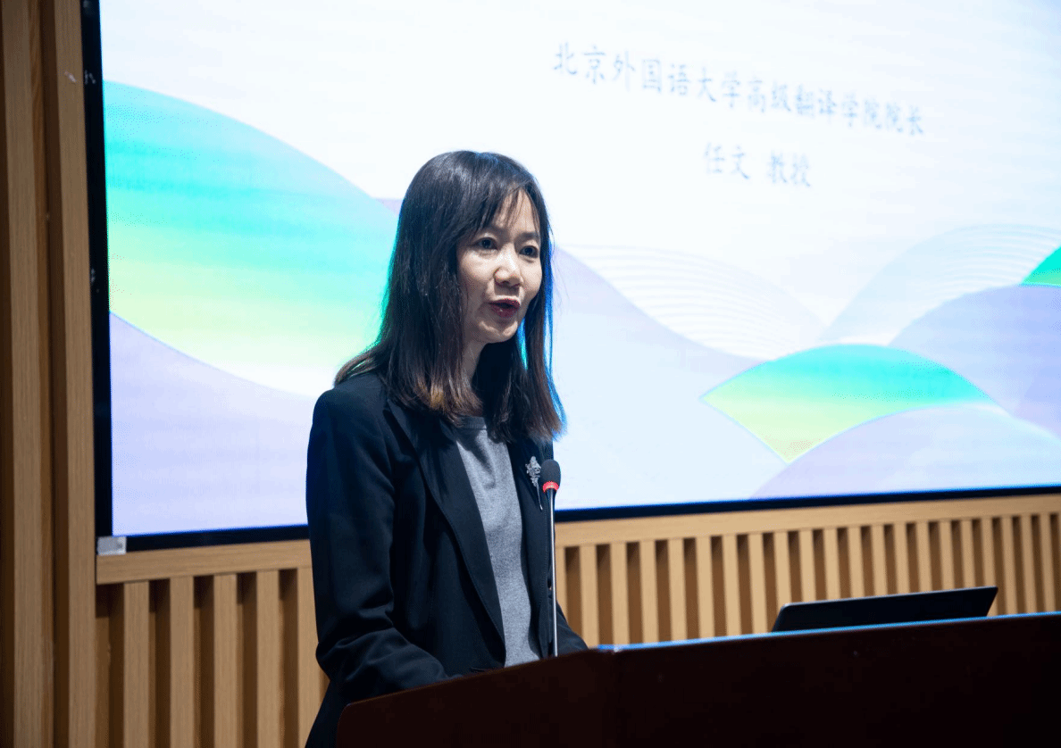 北京外国语大学高级翻译学院院长、国家翻译能力研究中心主任任文教授致开幕辞。她指出,在人工智能等技术迅速发展的今天,翻译领域正经历深刻变革,多模态翻译已从边缘成为热点,成为国际传播的关键内容与手段。因此,翻译能力正被重新定义,新时代译者不仅要掌握语言转换能力,还需具备技术应用与多模态内容整合的综合素养。翻译学科也正综合利用多方资源,努力连接时代与社会。任文教授勉励青年学者要保持好奇、勇于跨界,深耕研究、关注现实,将学术探索与国家社会需求紧密结合,相信自己能够成为新时代翻译事业的建构者,为国家翻译能力建设注入新活力。开幕式由高级翻译学院学科发展中心主任赵田园副教授主持。